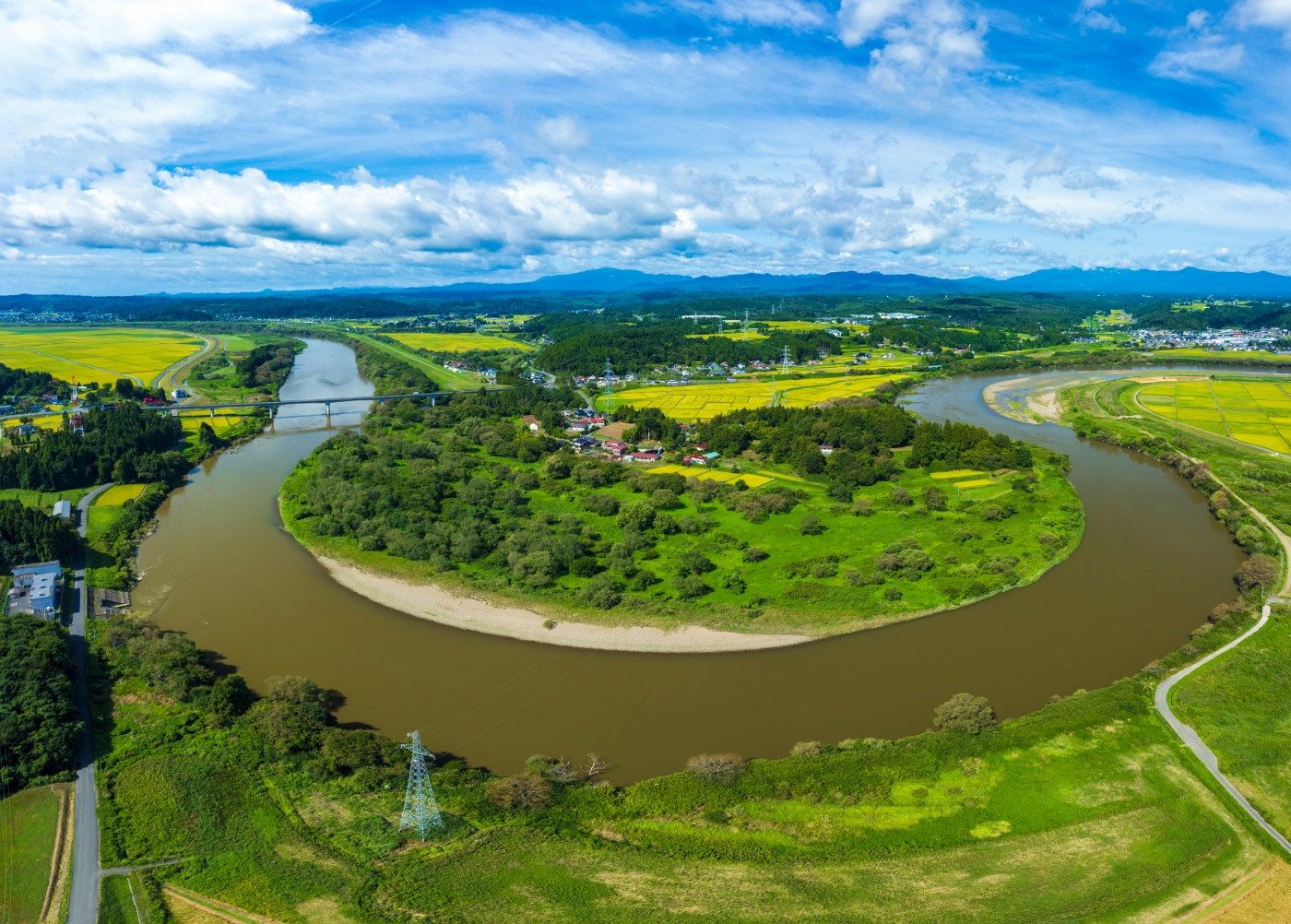 平泉前沢ICから「牛の博物館」方向に向かうと前方に丘が見えてきます。その一帯が安倍頼時の八男・白鳥八郎則任の居城と伝えられている白鳥舘遺跡です。遺跡には、堀や曲輪の跡が残り、中世城館の姿をほぼ原形に近い形で見ることが出来ます。北上川に周囲を180度以上囲まれる天然の要害であり、10世紀から16世紀まで北上川交通の要衝地として利用されてきました。雄大な北上川に守られる景観は、まさに絶景です。