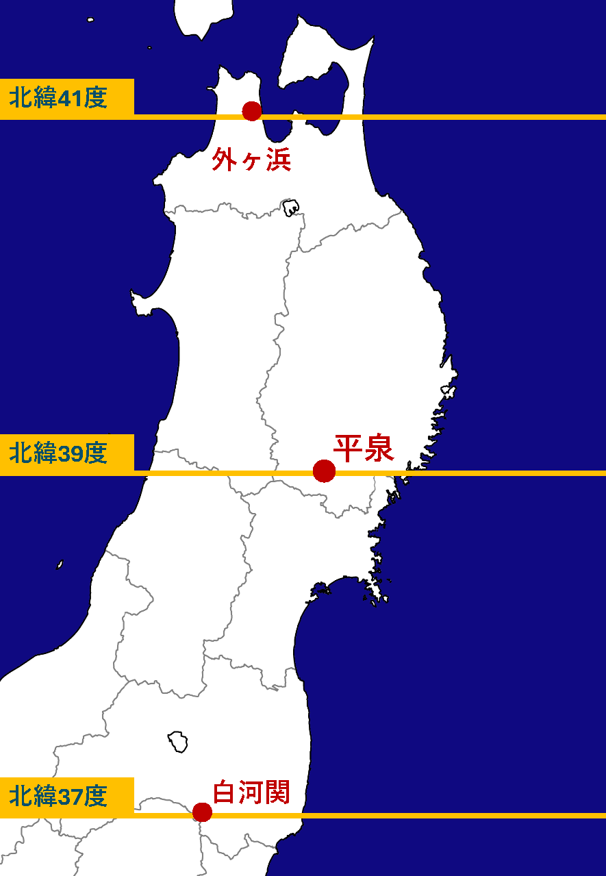 事実、清衡の統治範囲は、南は福島県白河関、北は青森県外ヶ浜に及ぶものでしたが、白河関が北緯37度、外ヶ浜が41度であるのに対し、中尊寺は北緯39度と、文字通り東北地方の中心に位置していました。